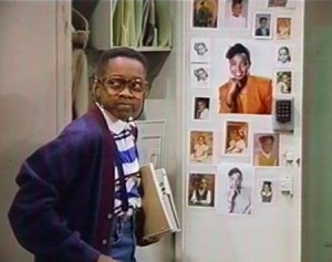 Waldo blinked. "Why you gonna do that, Willie?" "'Cause it's Tuesday," Willie answered. Waldo blinked. "Again?" Willie took a huge screwdriver out of his pocket and began to pry open Urkel's locker. The second it opened, a siren went off. It echoed up and down the hall, louder than a car alarm in a parking garage. Some kids just getting out of class stared at Willie. Quickly, Willie put the screwdriver into Waldo's hand. He then went over to his own locker. Trying to look busy and innocent, he began to work the combination. It was obvious that he had no idea what the numbers were. And looking innocent was one thing Willie Fuffner just couldn't do. Meanwhile, as soon as the alarm had gone off, Steve Urkel came running down the hall as fast as he could. He could have moved faster if he hadn't been carrying half a dozen extremely heavy textbooks. He set the books down. Then he reached into the locker and expertly deactivated the alarm. Silence at last! Then he looked around for the culprit. He didn't have to look far, since Willie's locker was only a few lockers away from his own. Steve walked right up to Willie and tapped him on the shoulder. "All right, come clean, Fuffner. I know you're the guilty party," Steve challenged him fearlessly. Willie turned around and grinned. "Not me, Potato Face." "Potato Face?" Urkel repeated thoughtfully. "Brilliant use of the English language." He turned and addressed the crowd of students that had gathered to watch. "Fellow students, I beg of you. Isn't there one of you with the guts to come forth and testify against this brute?" No one said a word. The students just stood there staring up at Willie. Without blinking, Willie returned their gazes. Suddenly, everybody seemed to have to get to classes on the other side of the building. It was common knowledge that Willie Fuffner was the toughest kid in school. Satisfied with himself, Willie headed over to the drinking fountain. Seeing the scattering students made Steve shake his head in disgust. "Sheep! You're all sheep," he said. He returned to his locker and inspected it for damage. Just some bent metal around the lock, which could be easily fixed. Fortunately, the rest of the locker was in perfect shape. It was a good thing too, for Steve Urkel's locker was no mere locker.